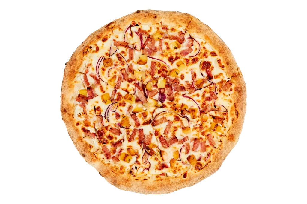 sauce tomate, mozzarella, jambon de dinde, chorizo, lardons