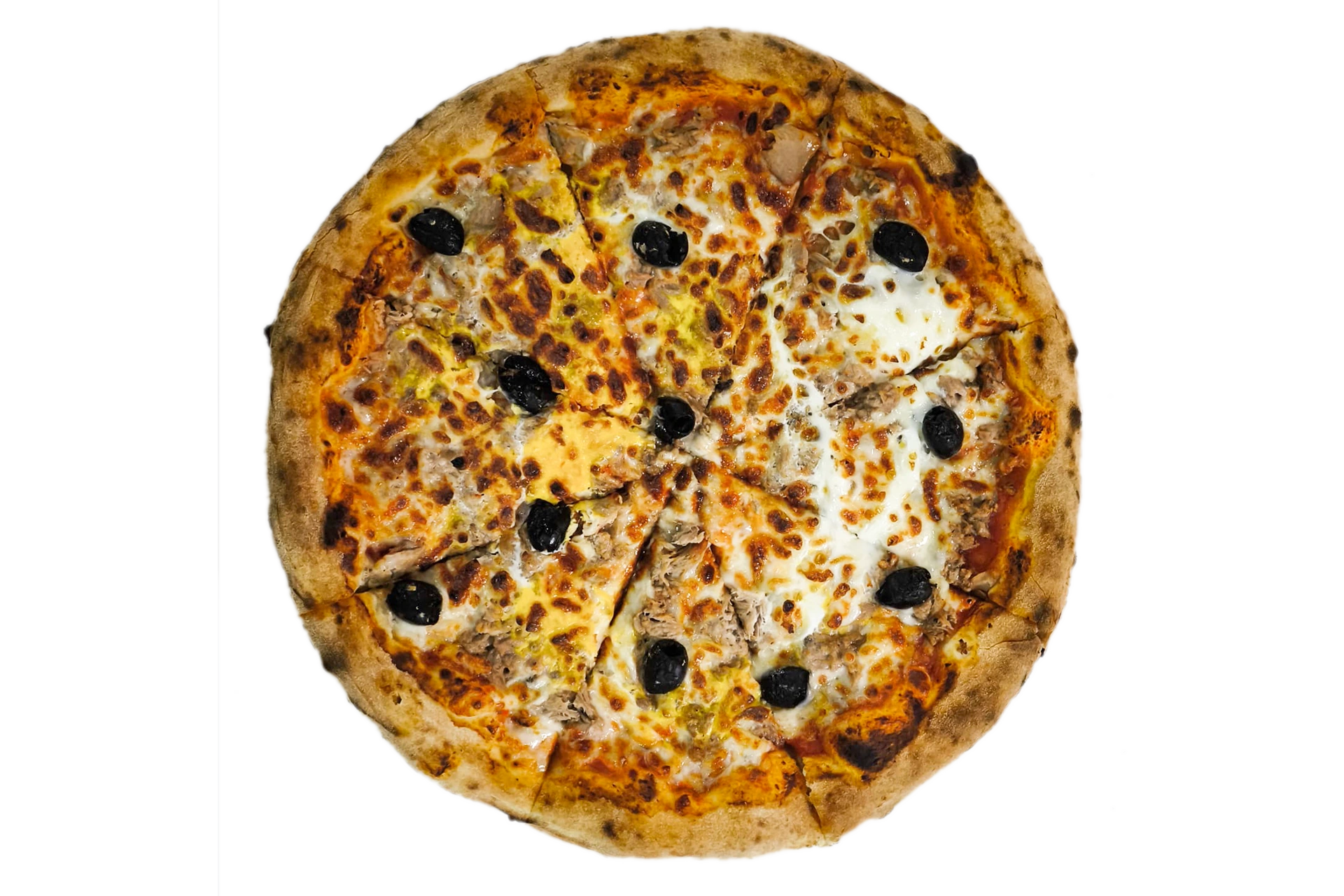 Sauce tomate, mozzarella, thon, olives, oeuf