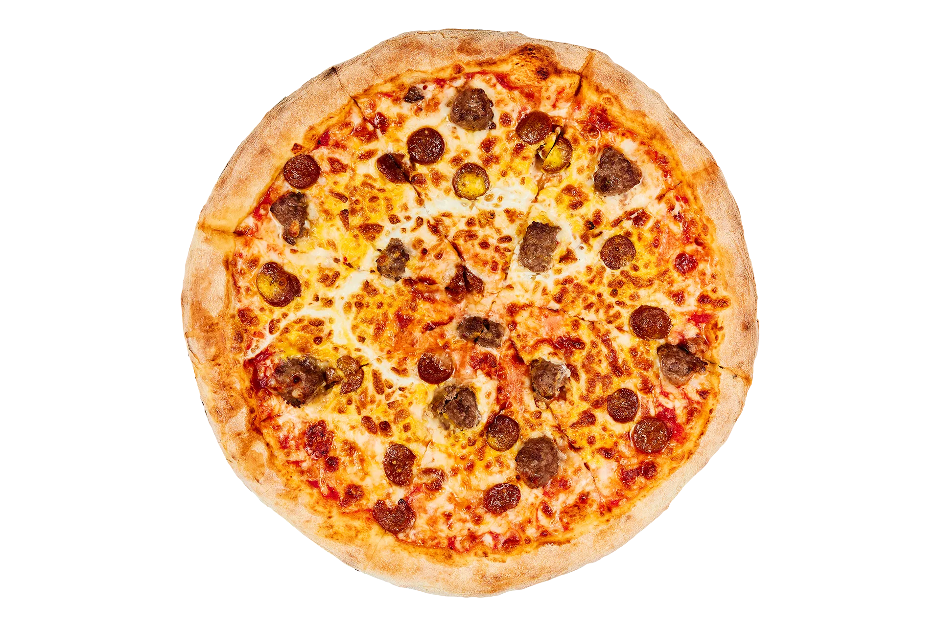Sauce tomate, mozzarella, viande hachée, merguez, oeuf
